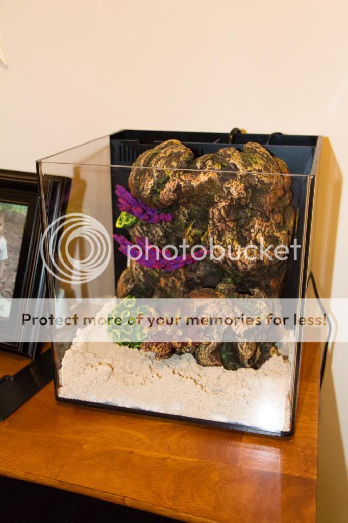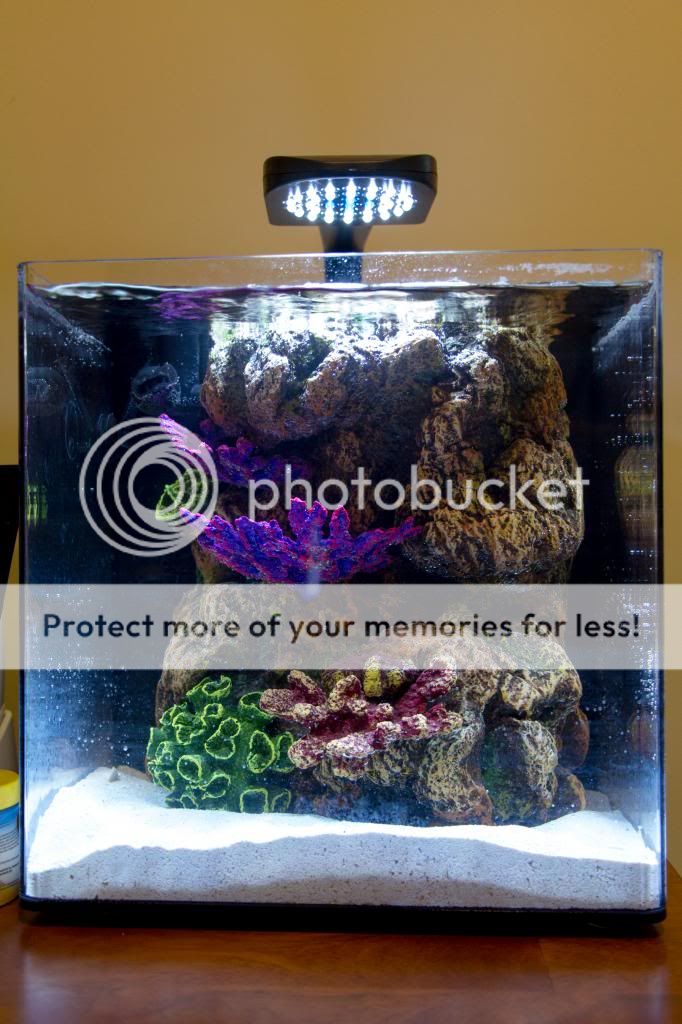 I know this is kind of like cheating... but I wasn't entirely sure how much live rock I need and especially what type of live rock I wanted to purchase. So I figured I could circle back around with that, but I didn't want to leave the aquarium bare. So in comes the coral insert and I have to say I'm not entirely displeased with it.