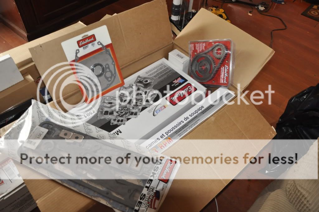 Well, I got a bunch of the goodies to start it- the components for the new 383 stroker we're building to run the truck and the 5 large case 320 amp Leece Neville alternators. These came the other day- the Edelbrock top end kit(intake, heads, cam, lifters and timing gear set) and the rotating assembly kit for the bottom end(scat crank and connecting rods, Keith Black pistons, comp cams push rods, all the bearings, roller rocker arms, oil pump and of course all the gaskets)