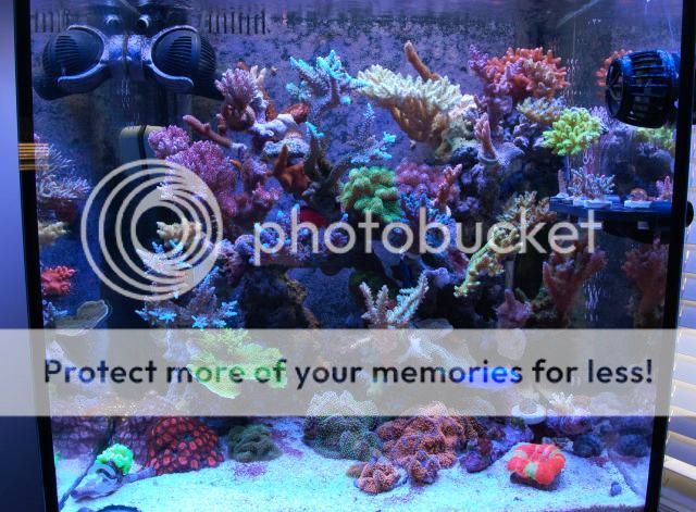 Here is an older 24g reef using MH lighting. A little more nutrient in this one than the solana. I fed daily on this one usually, and usually had a small amount of detectable nitrates.