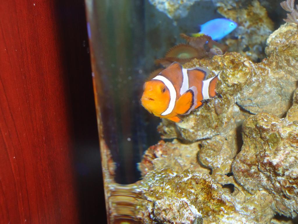 Hey everyone, noobie here needing some help/advice here... I'm not sure if my clownfish is sick or what.. He was fine yesterday, and even earlier today. I went to work at 3, came home at 10 and he was swimming pretty fast all around my tank and i noticed he looked a little pale. Also, around his face he has this whitish stuff just dangling blowing in the current as he swims... Heres some photos, the first is of him yesterday, and the rest are just now.