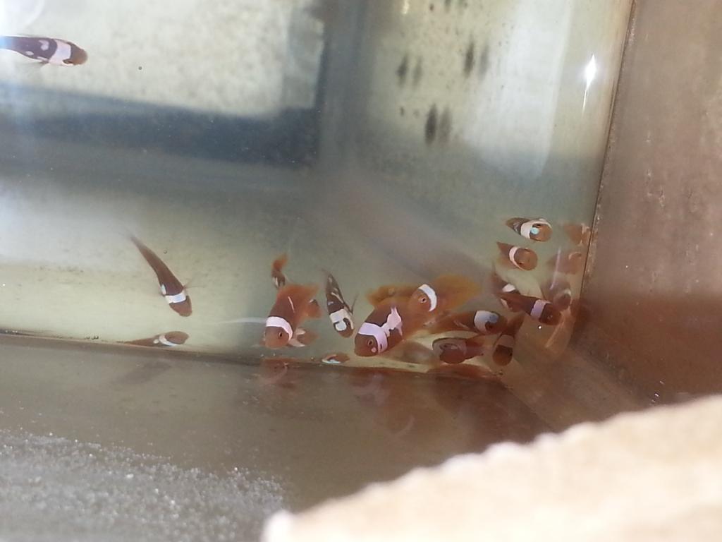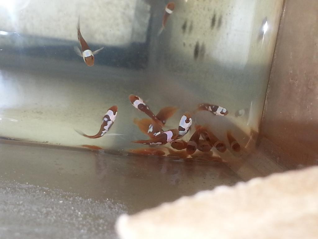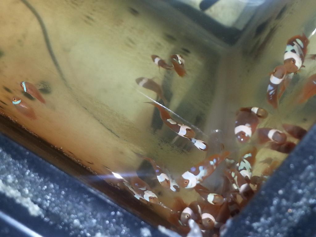 Here's another update on my offsprings a snowcasso X c-quest onyx offsprings .can't wait till the black fills in these guys were hatched on 1/24 keep in mind these are 100% percula "No hybrids"