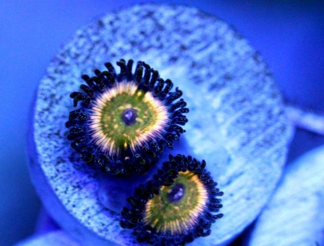 mini colony green/blue paly 20+ heads on piece of live rock$25