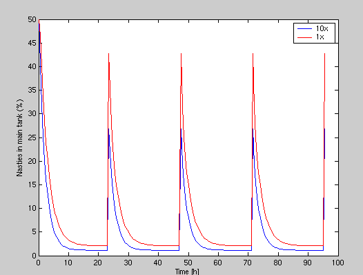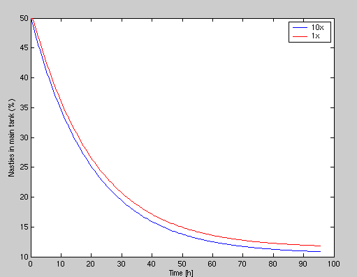 You are predicting 1% of the nasties in the entire system are removed/hr or that 1% of the nasties in the total volume of water moving thru the skimmer is removed?