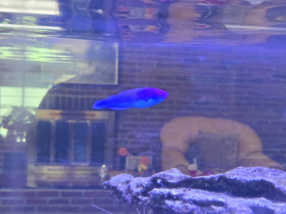 Selling my ruby head fairy wrasse that I had for about a year. Eats everything. About 3-4 inches. Super fat and healthy. Selling it for $95.