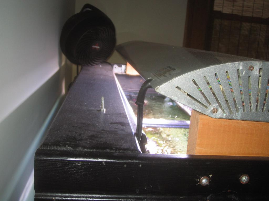 I bought a spacelight Halide fixture sitting on a canopy on some cut 2x4's with a PC Coralife retrofitted into the canopy off a member from MR. They are 3x150w and yellow 15k on the outsides and 10k blue on the inside. I want to adjust some of the PC's to more actinics and the halide bulds to more blue then yellow. I'm looking for some advice - or a vendor - to recommend a good way to fit it with more stability and add some bulbs without breaking my wallet.