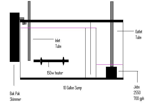 heres a easy setup for you. depending on how big your tank is you could use this layout i found it somewhere i forget. u can also add another baffle were you see the water pipe comming in. add a sock with live sand to that pipe. then add the live rock in the middle with the skimmer and heater and then you got 3 baffles were it goes over under over and back to the tank with the right pump..