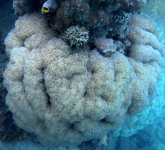 We were surveying a new area of reef, and we came upon this coral I have never seen before. Does anyone know the species? The skeletal structure appears to be the same as a Euphyllia ancora, but the polyps look more like a bubble coral (Plerogyra), except smaller. Right next to it in the second photo, you can see a euphyllia ancora. Thanks!