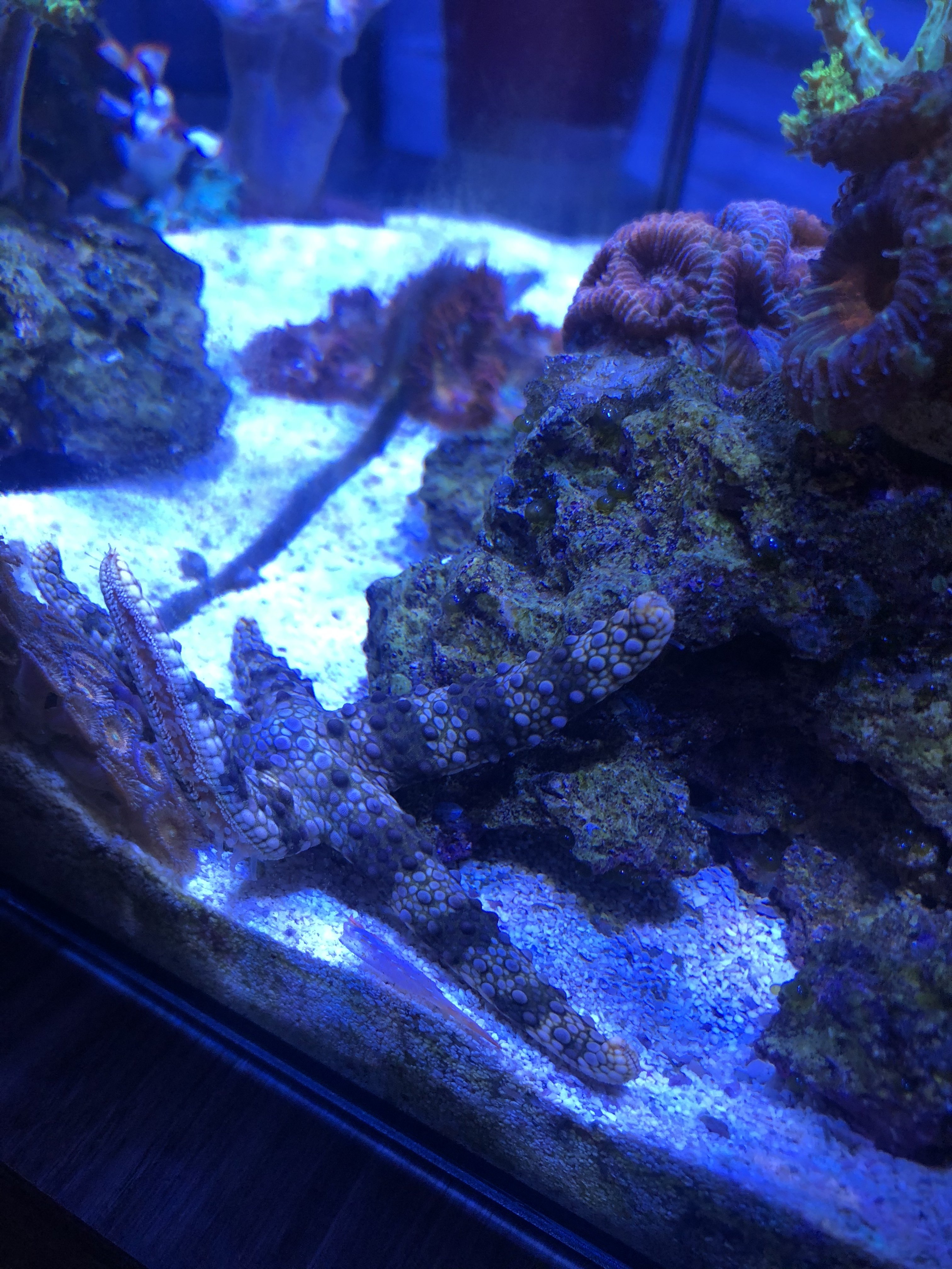 I have two starfish in a 12 gallon nano. One was sold as a “mottled” starfish the other as an orange linkia. I added a smaller red fromia which the mottled star ate. Is it due to the size of the star I added or because it’s from a different family of starfish? I’m trying to add a tile starfish around the same size but reconsidering it to avoid adding a fromia family star. So far these two have gotten along well, I feed them a clam on a half shell each twice a week
