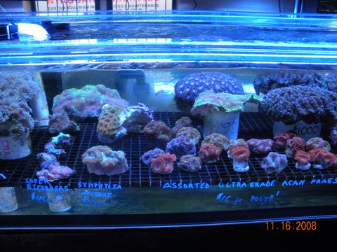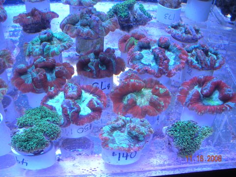 Over 30 neon rainbow trachys and brains, 20 pieces of ultra color blastomussa, lots of colorful acan maxima, blue and red milleopora corals, super colored scolymias, bubble gum watermelon chalice, acanthestrea rotundaflora, echinata, etc.