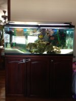 Everything Must Go together! 55 gallon salt water aquarium (wet & dry, skimmer, UV sterilizer, canister, coral life light, heater, wave maker and extras) 3 life rocks, star fish, 2 lion fish, 1 golden damsel, toadstool coral.