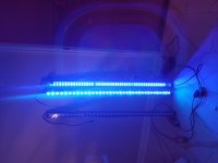 The Orphek is the bar on the bottom, it is much brighter than the Reefbrite. Only one bar for sale