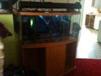 72 GALLON BOW FRONT FISH TANK AND STAND,COMES WITH TANK,WOOD STAND WITH FILTER HIDE AWAY,PENN PLAX 1200 CANISTER FILTER 315GPH,POWER HEAD,CURRENT 48'' t5 lighting(2 fans)with moon lights,everything is like new and a year old,spent over $1200 for set up ,asking $400 631 357 7704 wayne