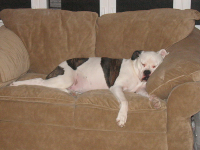 Riley 6yr old American Bulldog. The last one is when I first got her at 2 months old.