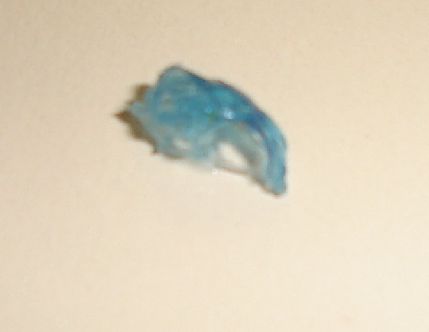I have found a small blue 'skeleton/head' like structure on my sandbed all other animals accounted for (1 diamond goby, 2 cleaner shrimp, 1 emerald crab, and several snails) except my six line wrasse. Is this his skeleton or do you think he could be hiding really well? The structure is hard, symmetrical, bright blue, no flesh attached.