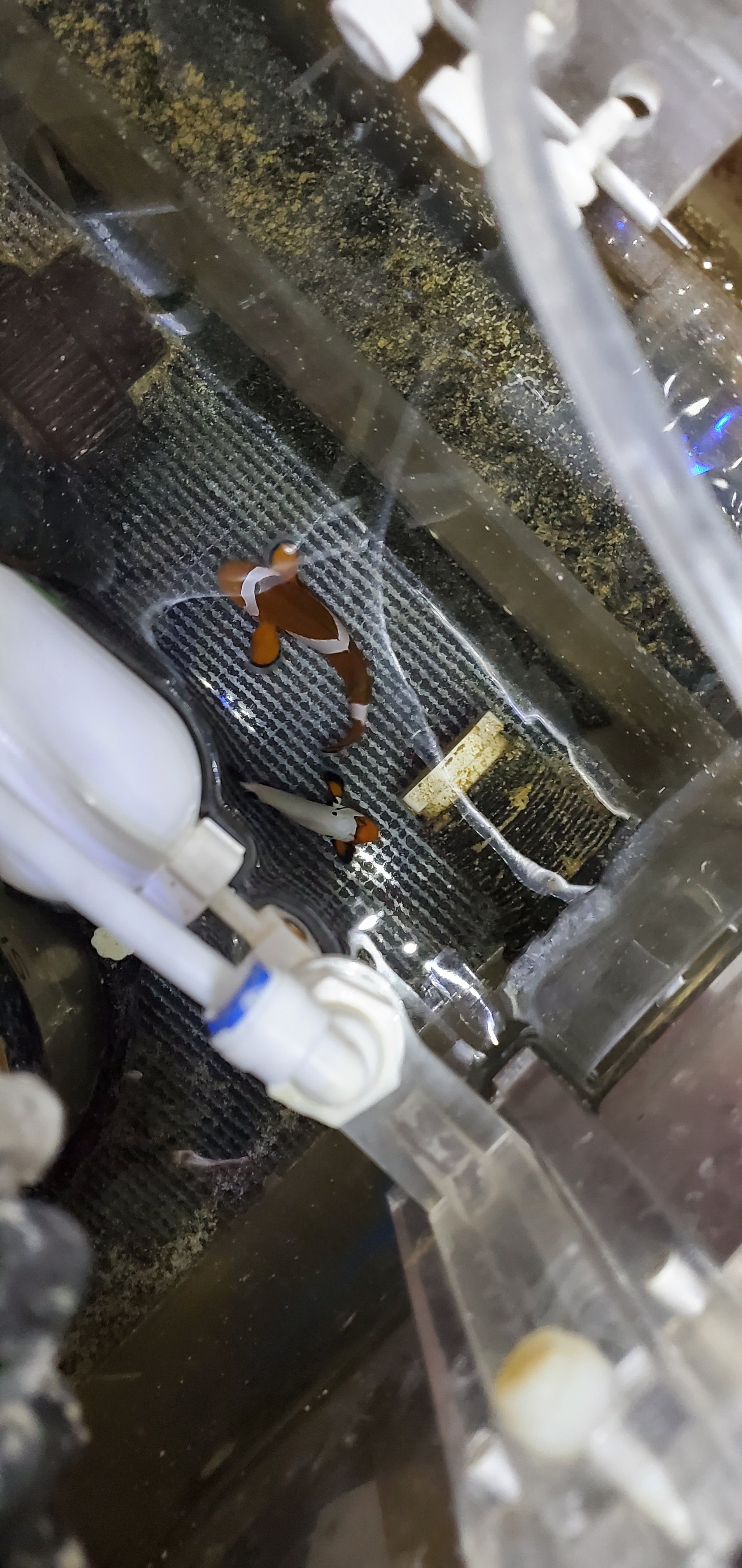 Male Wyoming white clownfish and the female is a regular clownfish,,egg layers. $75 for the pair thanks for looking.