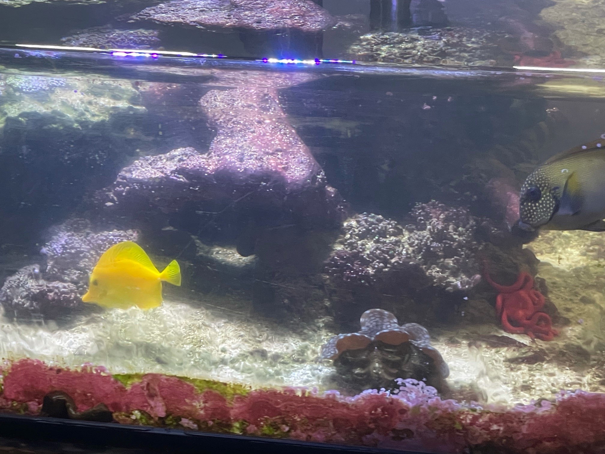 1 - 4" Yellow Tang. Had this tang for two years and has been a perfect citizen and in pristine health. Many have flaked which is always quite common here on MR so I am re-posting. Sorry for the terrible pic.