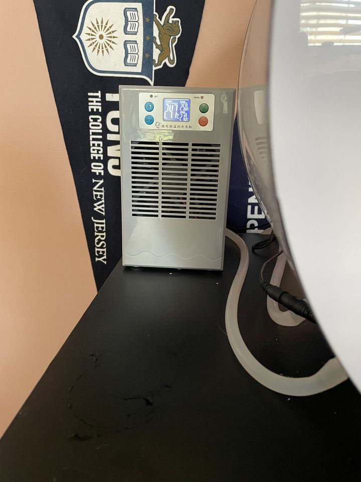 Tank did a great job of holding 2 small sea nettles This system is plug-and-play and even includes a chiller to keep the jellyfish in a stable environment.