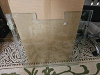 1) 2'x2' Cube. 5 panels, the base is 1/2" thick, the side and front panels are 3/8" thickness. Except for the bottom panel all other panels are low iron glass. Even though I have cleaned them and removed most of the silicone I used to join the panels but they are still a bit dirty. I inspected them for scratches only 1 panel has a minor scratch. $400