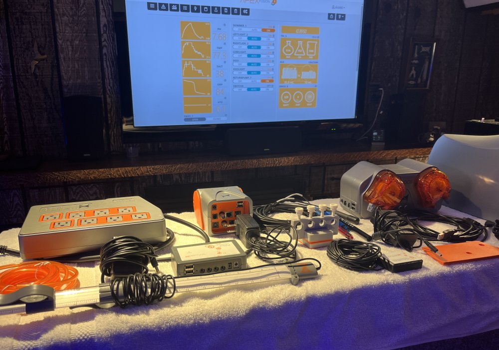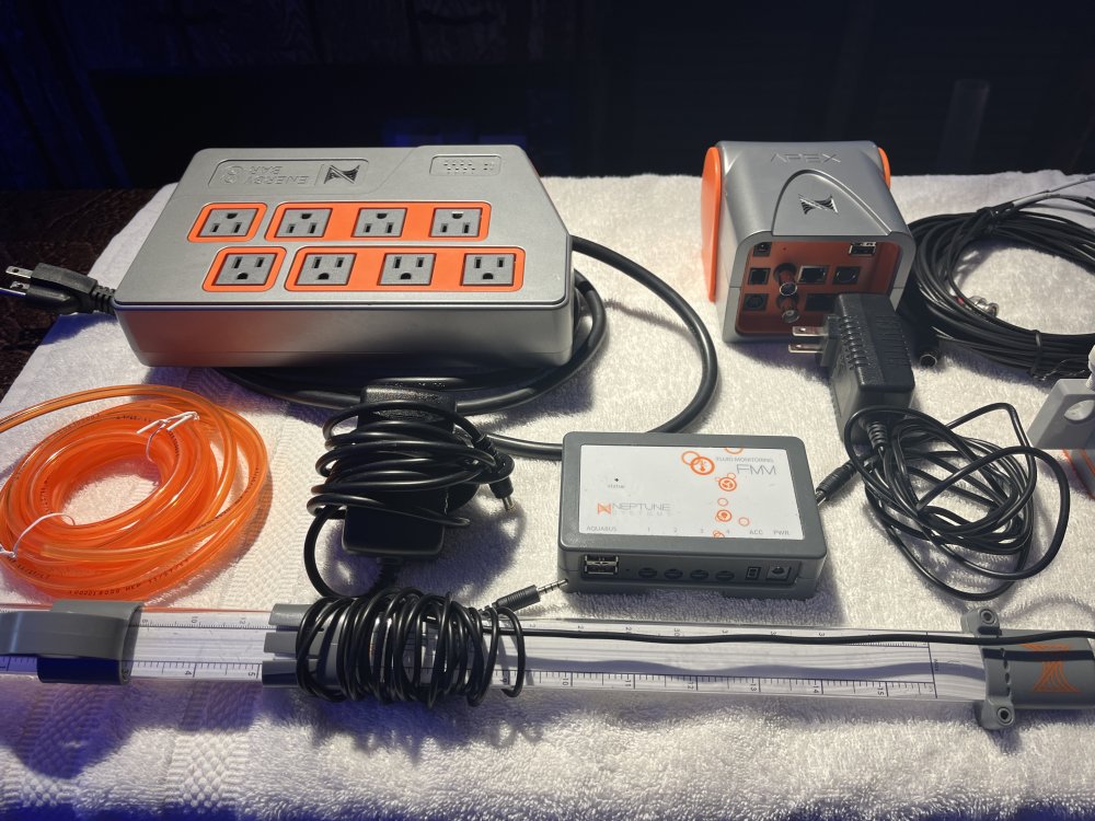 Everything you need for success, all cables calibration fluids (no Trident reagents) this was running until my Red Sea seam split last year. everything works as it should. Dos is 3.5 years old, Trident is 2.5 years old, Apex (uncertain, I have had four units ) If you send serial # into Apex they will tell you. #97159