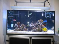 This is a super nice custom tank that took over 3 months to make. I finally received it on friday and chipped 2 edges putting it on the stand. It's holding water no problem, but I don't feel comfortable with my young son playing around it. It's almost cube shape: 48 wide, 36 deep, 24 tall. It has a small overflow in the back left corner. The front and right glass are starfire.