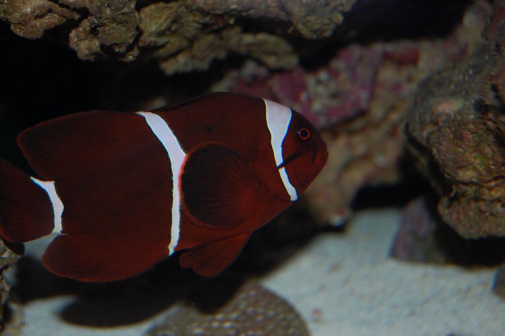 AND A GREAT LOOKING MAROON CLOWNFISH- HE DOESNT LIKE OTHER CLOWN FISH SO IF YOU HAVE ANY THIS IS NOT FOR YOU, BUT DOESNT BOTHER ANY OTHER FISH MAN IS THIS FISH COOL $20
