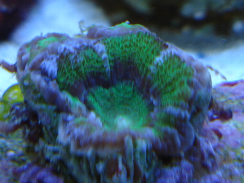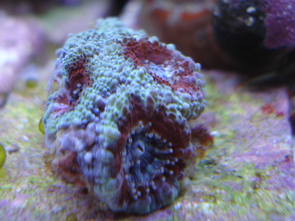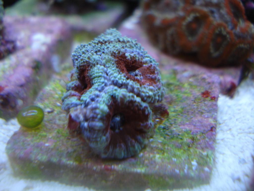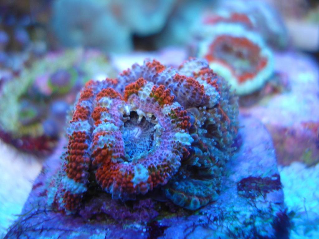 Just got some fresh blackbeard acans, every frag has three or more heads. I also have a tri-colour Acan echinata, a rasta man's chalice, some favia and zoanthids.