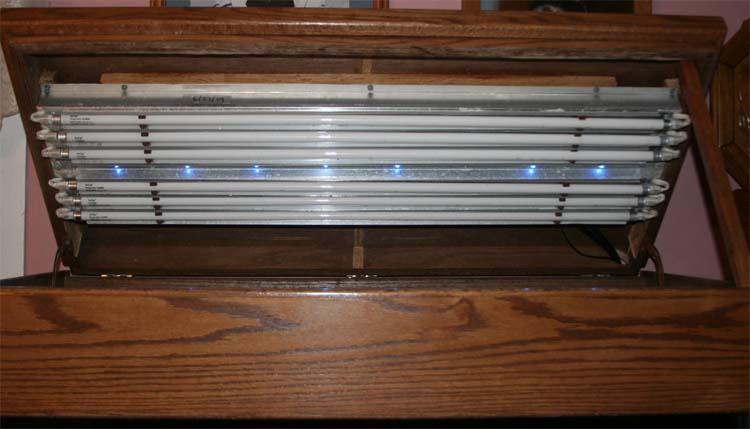 Selling my Oceanic oak hood (36" x 18") with a Catalina Aquariums 6 x 39 T5 retro fixture and 8 moonlight LED's (one of which is out) on a dimmable power supply. I added wooden air vents on either end to increase airflow. The fixture has 2 cords and switches, one controls 2 bulbs and the other one 4. Will also include 6 used bulbs (about 8 months old) - asking $150 with p/u on Staten Island.
