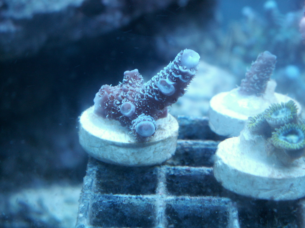Millepora purple with blue tips Multiple branch 1.5 inch $15 single branch 1 inch $10 Both SOLD