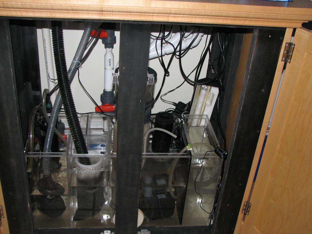 i bought this setup from another member , i was plan to set it up , wife doesn't like it because too big in our kitchen , here what you get Its a 65gal with a custom clear maple stand and hood.