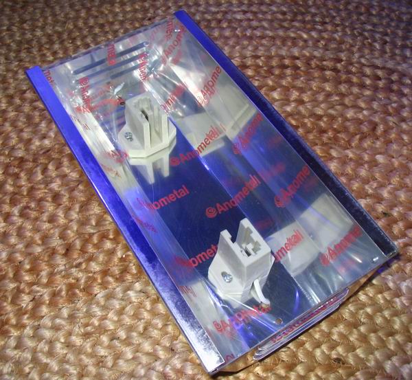 Retrofit MH (double ended) reflectors (slightly used); 250W HQI (Double Ended) MH Retrofit Reflector Retrofit Reflector and socket for a double ended MH lamp! Great for small tanks and canopy installations! * Advanced parabolic reflector design, shaped out of the highest quality polished aluminum mirror material. * Designed for 1 250W Metal Halide HQI lamp. * Mirror finish for up to 99% reflectivity. * Fully assembled sockets with bracket * Sockets made of corrosion/heat resistant resin, not plastic. * UV glass shield included. * Dimensions: 11in L x 6in W x 3in H