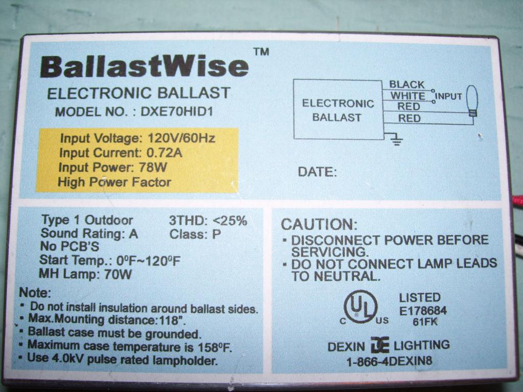 CF and 70w MH ballast FS