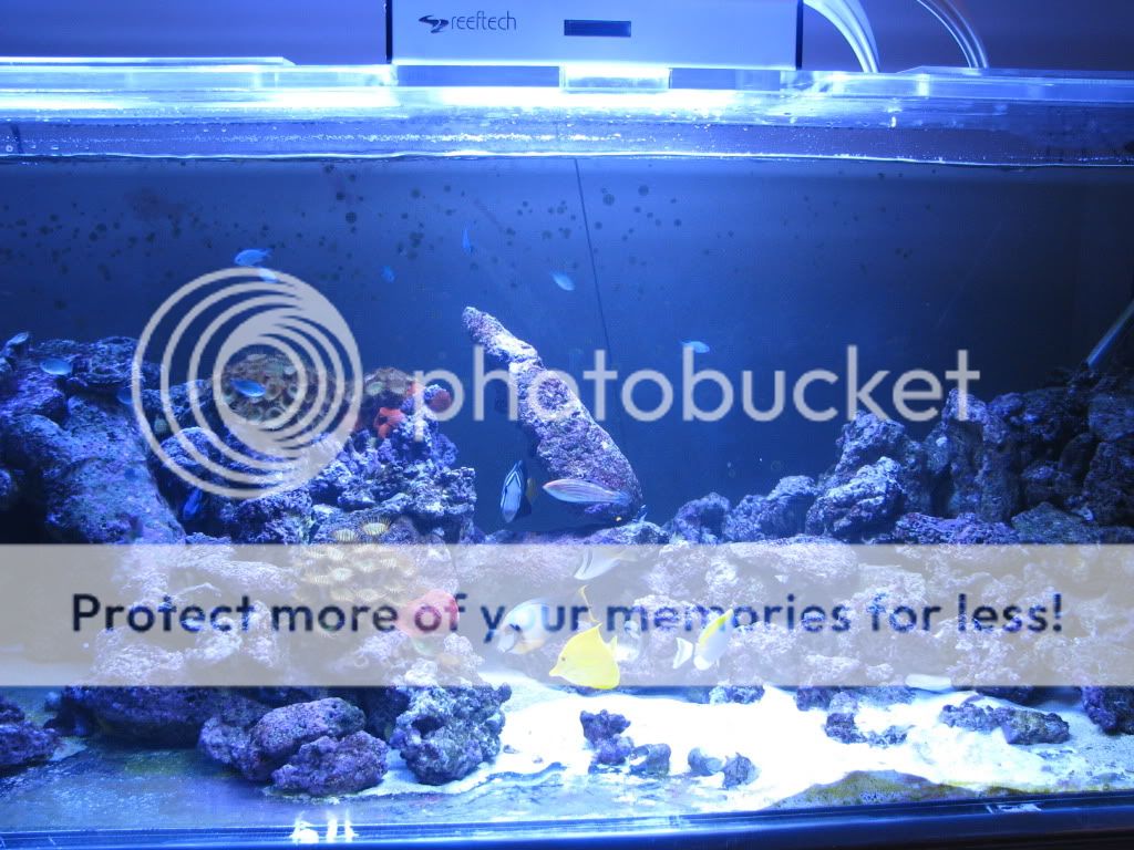 So I cleaned up the tank a bit and did a water change along with gfo and carbon.I removed as much crap as I could,tank of the month? no way in hell but its a little cleaner than it was.I also took a pic of just 1 reeftech led unit on my tank and let me tell you its pretty darn good.