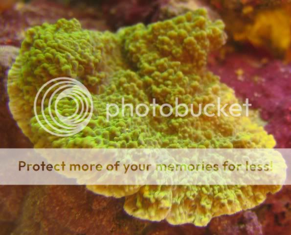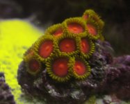 Another favorite - orange center with orange skirt - gorgeous, but only 2 polyps on this rock, but the other orange skirts are nice too