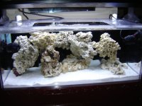 I just wanted to share some photos of my new tank with you. I've been busy building all sorts of things for our MR members but I found a little time to spend on a tank of my own. Eventhough I build complex set ups for others my motto is simple for myself KISS (keep it simple stupid) :biggrin: I had a bunch of items sitting around so I chose to just use what I have as far as equipment. I wanted this to be a total DIY so I even chose to build my own stand which was a first for me. After checking the DIY threads on stands I thought I'd give it a try. So here's what I came up with. Not the quality as some of our other MR members who build stands but for me its fine. Actually its what I'm most proud of in this entire project because the tank and sump were easy as pie because that's what I do :approve: