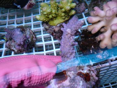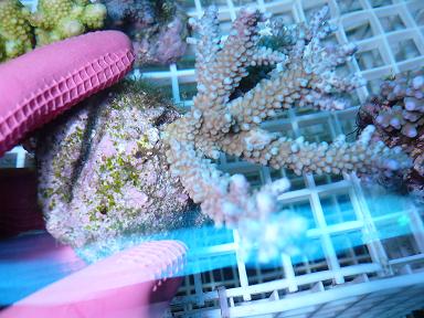 -Acropora Parills purple with green tips ($25 a frag 4-5 pieces available)